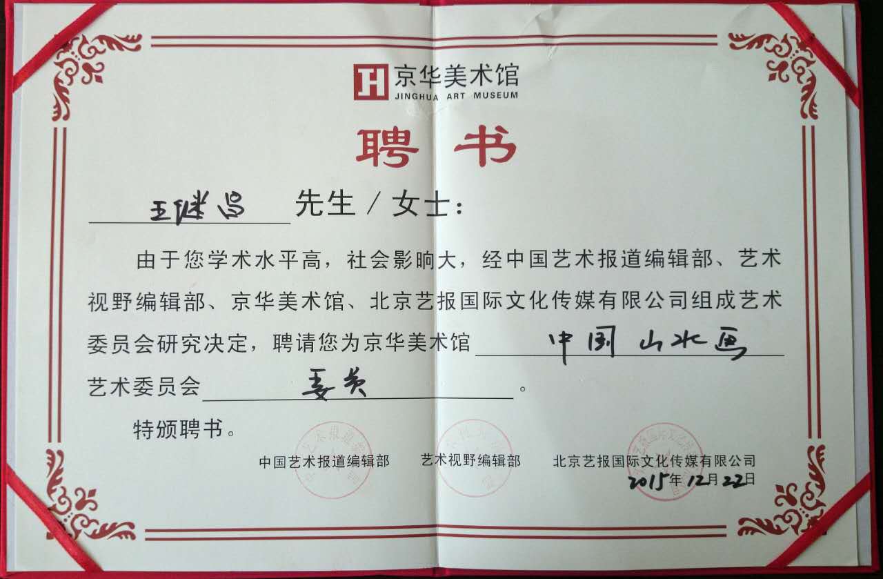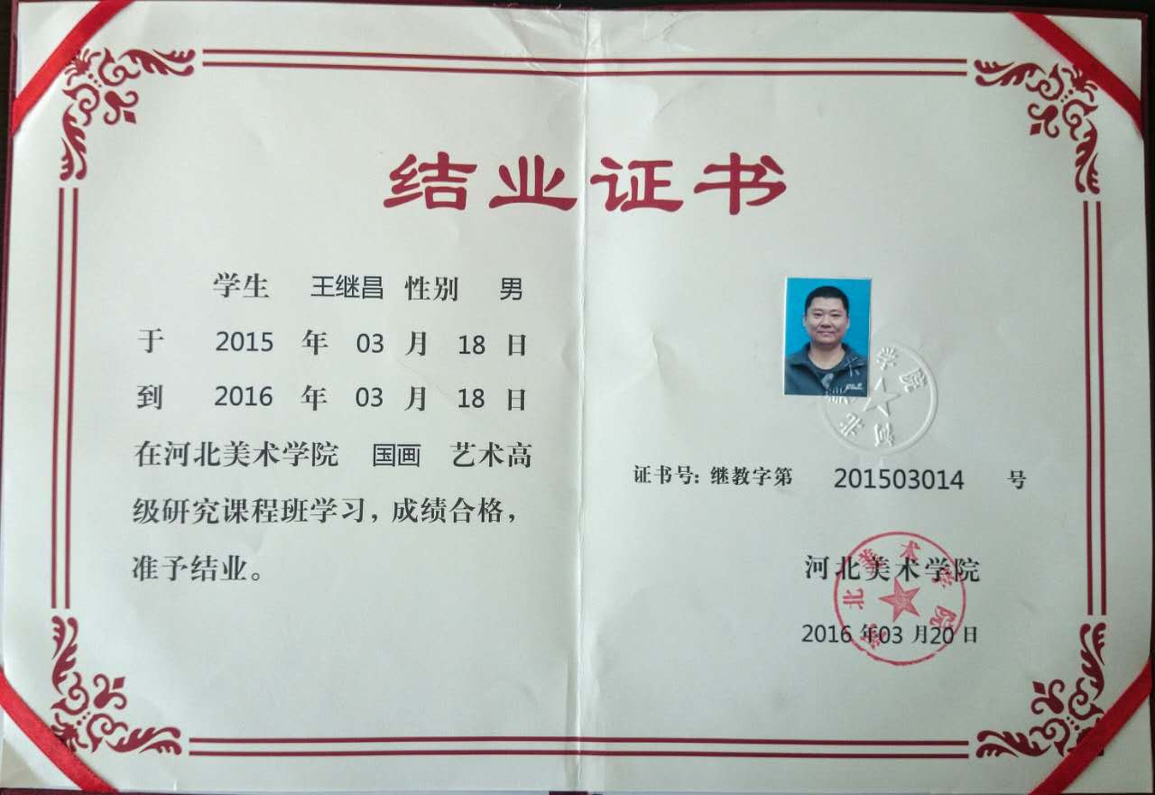 王继昌,字钰禾,号物演堂主人,国家一级美术师,书画鉴定评估师,文物艺术品鉴赏师,独立书画市场评论人。徐悲鸿第三代弟子,文化部艺术人才库入库国画家,中央电视台品牌影响力年度品牌艺术人物。出生于山东省菏泽自幼酷爱绘画,进修于河北美术学院中国书画高级研究班,北京大学兰亭书画研究院客座教授,国艺华夏(北京)书画院院长,中国艺术报道编辑部、艺术视野编辑部、京华美术馆艺委会委员。