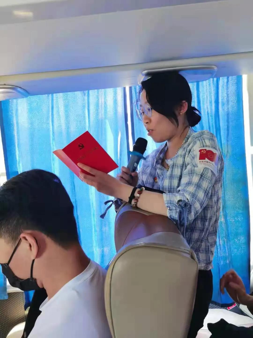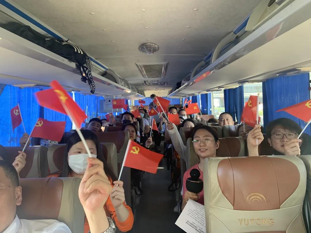 乘车途中,组织全体人员开展集体唱红色歌曲,党员领学《党章》、观看《建党伟业》电影等活动,既丰富了主题活动的内容,也提高了活动的实效性,更增强了“永远跟党走”的信念,从而引领社会组织中的党员及从业人员铭记革命历史,传承红色基因。
